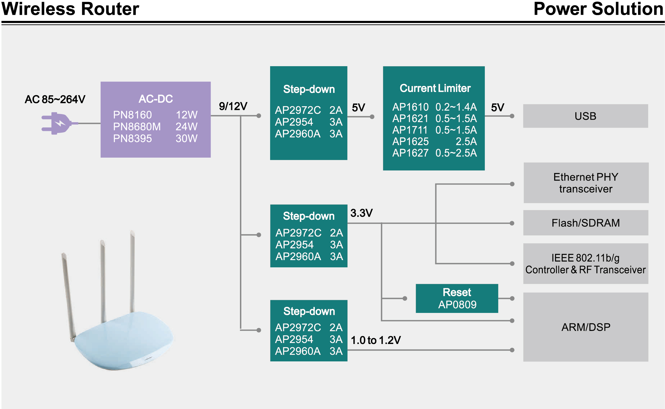 Chipown可以爲您提供從AC/DC、到降壓DC/DC、以及USB限流、複位等全系列的電源管理芯片産品,爲客戶提供高性價比、性能優異、品質穩定的通訊類系統配套方案。